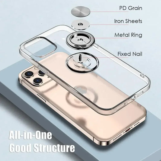 With Ring Stand Soft Transparent Case For iPhone 12 13 14 15 Pro Max Phone Cover For iPhone 7 8 Plus XR XS Max Magnetic Car Case